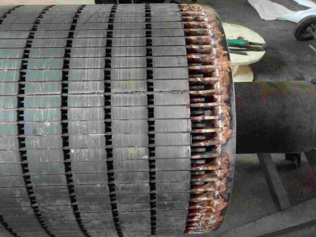 In cast aluminum rotors, the end-rings (and often integrated cooling fan blades), are cast as a single aluminum structure at each end of the rotor. Under normal operating conditions, these end sections are mechanically stable. However, under elevated thermal and electrical stress, a serious problem can occur.